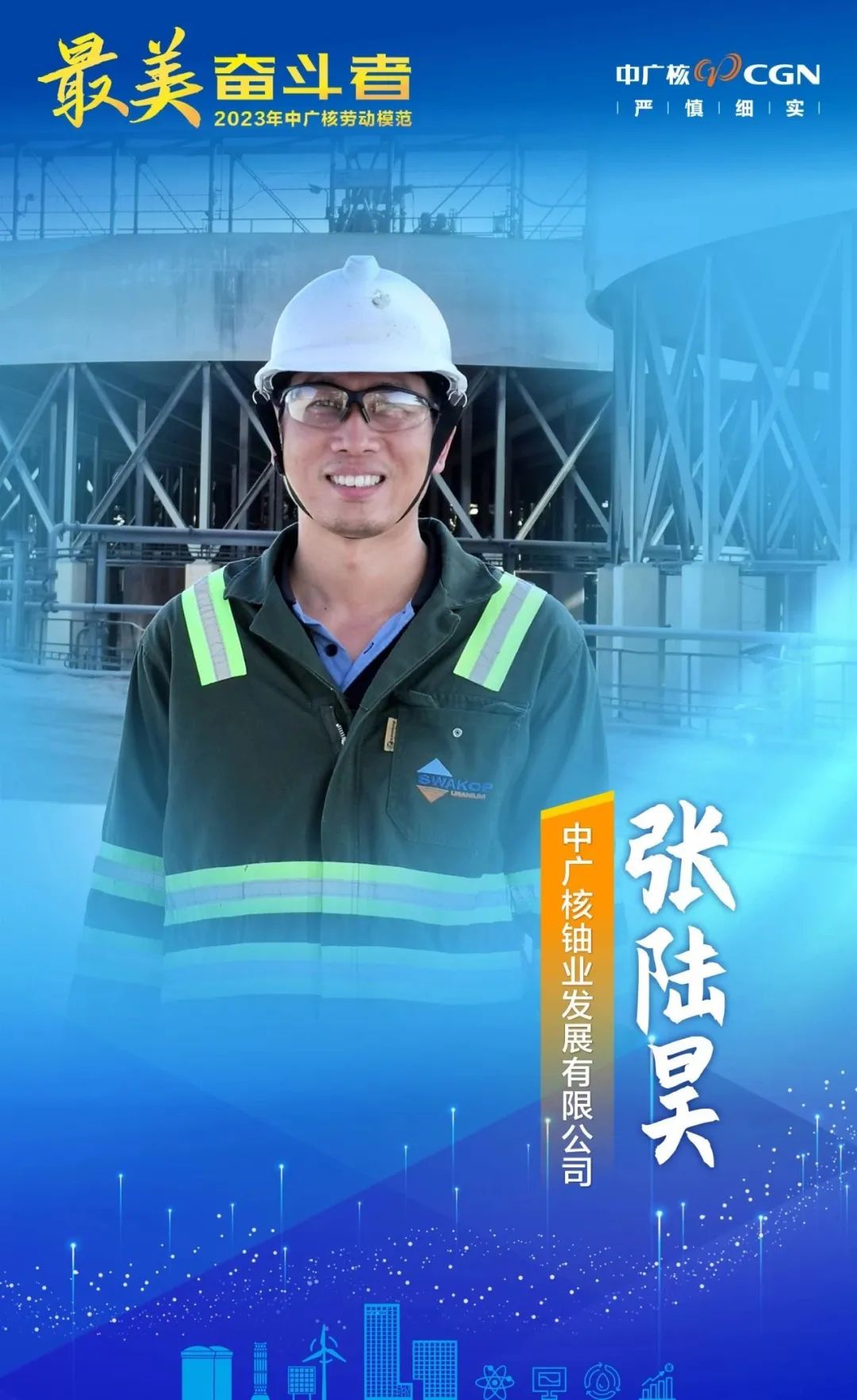 2018年,張陸昊離開祖國,遠赴非洲納米比亞沙漠腹地,開始參與中廣核湖山鈾礦的建設和運營,一待便是六年。從基層班組長到水冶部門副經理,一路走來,他始終堅持以現場生產為核心,全力推動技術攻關。在他的帶領下,水冶團隊實現生產能力穩步提升,先后實現湖山鈾礦水冶年度磨礦量目標達成等公司重大里程碑。2023年,水冶總磨礦量、回收率、產品量等各參數表現均超過去年同期。張陸昊也被評為2023年中廣核“勞動模范”。