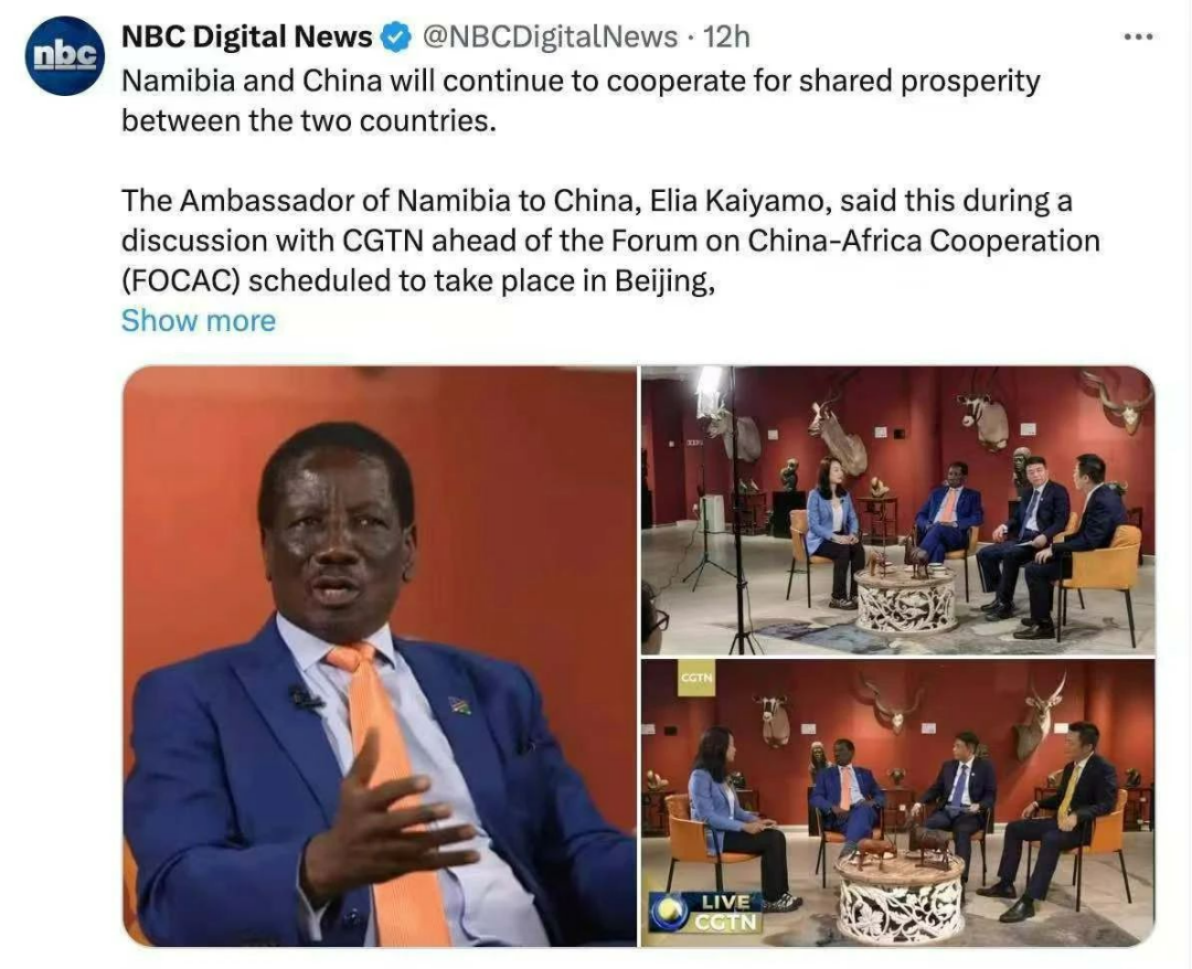 2024年中非合作論壇峰會前在CGTN聯合納米比亞國家電視臺NBC等策劃的特別圓桌節目《大使話中非》中