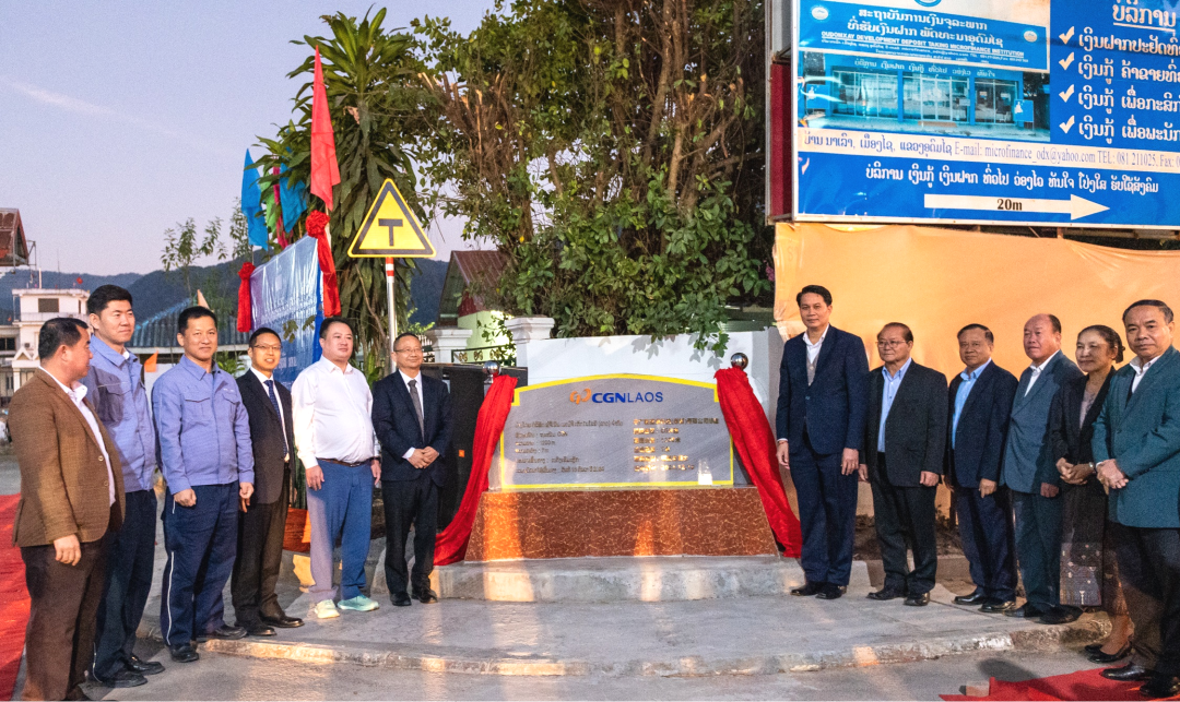 ▲老撾烏多姆賽省省長等為“CGN路”路牌揭牌