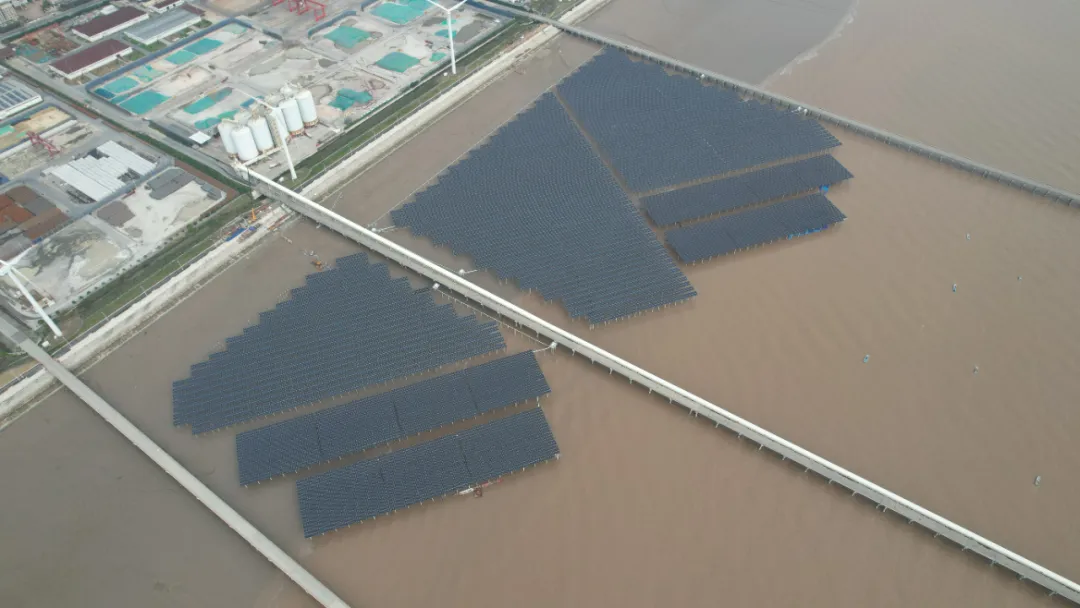 該項目裝機容量30.06兆瓦,總投資1.36億元,配套建設1座110千伏升壓站。項目位于世界三大強潮海灣之一的杭州灣海域,海域寬、風大、流急,施工難度大,面對海上灘涂光伏新業態,以往傳統的施工經驗方法無法滿足施工要求,項目團隊積極協調各方資源,攻堅克難摸索前進,科學制定施工方案,充分利用窗口期,最終實現了項目全容量并網目標。