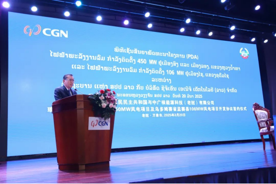 老撾當(dāng)?shù)貢r(shí)間3月20日,中廣核能源科技(老撾)有限公司與老撾政府在萬(wàn)象簽署《老撾北部互聯(lián)互通清潔能源基地二期556MW風(fēng)電項(xiàng)目開發(fā)協(xié)議(PDA)》。老撾人民革命黨中央政治局委員、建國(guó)陣線中央委員會(huì)主席辛拉馮,老撾能礦部部長(zhǎng)坡賽·賽雅頌,中國(guó)駐老撾大使館公參王暢等出席簽約活動(dòng)。
