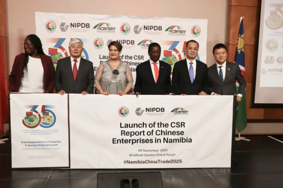 2025年是中國與納米比亞建交35周年。當地時間9月4日,首屆中國-納米比亞貿易投資合作洽談會暨《在納中資企業社會責任報告》發布會在納米比亞首都溫得和克舉行。本次活動由中國駐納米比亞大使館和使館經商處指導,納米比亞中資企業商會(以下簡稱“商會”)聯合納米比亞投資促進委員會、納米比亞工商會、中國在非企業社會責任聯盟等共同主辦,中廣核鈾業斯科公司(以下簡稱“斯科公司”)作為商會會長和秘書長單位具體承辦。這是中納建交35周年以來,在納中資企業首次聯合發布國別社會責任報告。