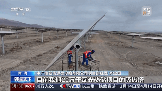在青海我國單體最大、儲能配比率最高的光熱儲多能互補(bǔ)項(xiàng)目中廣核德令哈100萬千瓦光熱儲一體化項(xiàng)目建設(shè)正酣其中80萬千瓦光伏發(fā)電項(xiàng)目已于2024年12月13日成功并網(wǎng)發(fā)電眼下施工人員們正在進(jìn)行該項(xiàng)目中20萬千瓦光熱儲能項(xiàng)目的定日鏡安裝