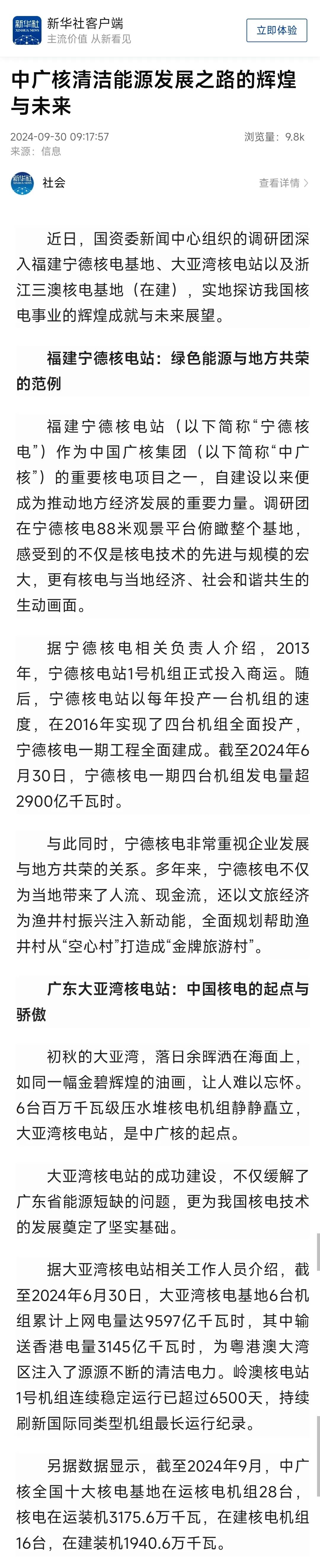 記者們結合實地探訪的所見所聞,以專業的視角和深入的筆觸,刊發了一系列相關的采訪報道,向公眾展示了中廣核數十年來在清潔能源領域的成果成效、科技創新,以及對國家能源安全和可持續發展所作出的重要貢獻。