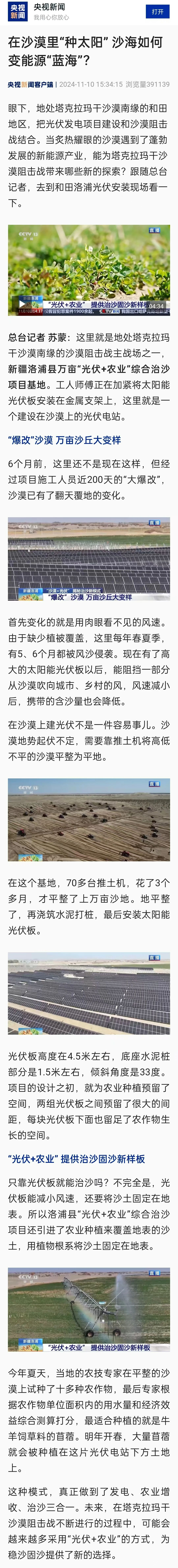 ▲中廣核和田洛浦萬畝光伏治沙項目