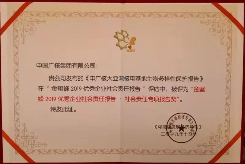 同時,中廣核于今年8月發布的《大亞灣核電基地生物多樣性保護報告》,還獲得“社會責任專項報告獎”。據悉,這是能源行業發布的首份生物多樣性保護報告,報告生動翔實地披露了大亞灣核電基地在環境監測、生物和棲息地保護、環保教育、信息公開等方面的責任行動,傳遞了中廣核“善用自然的能量”的品牌主張,有態度、有成果、有情懷,是中國生物多樣性信息披露的優秀代表。