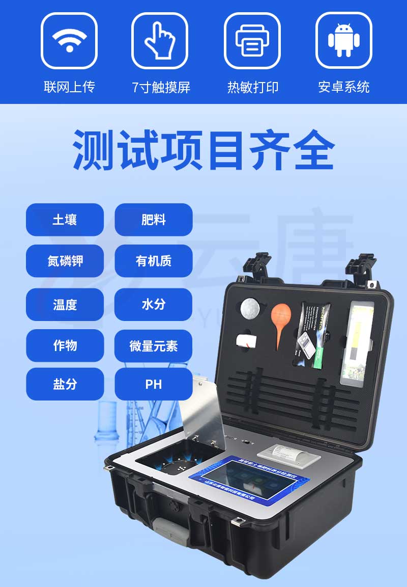 描述:高智能多參數土壤肥料養分速測儀安卓智能操作系統,采用更加**和人性化操作,儀器標配wifi聯網上傳、···