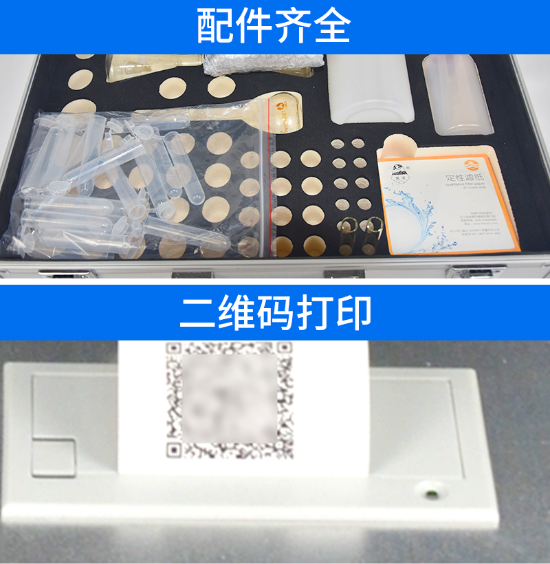 18、內置新一代高速熱敏打印機(無需色帶),打印內容包含:檢測單位、檢測人員、檢測項目、通道號、吸光度、養分含量(mg/kg)、檢測時間、以及二維碼等信息