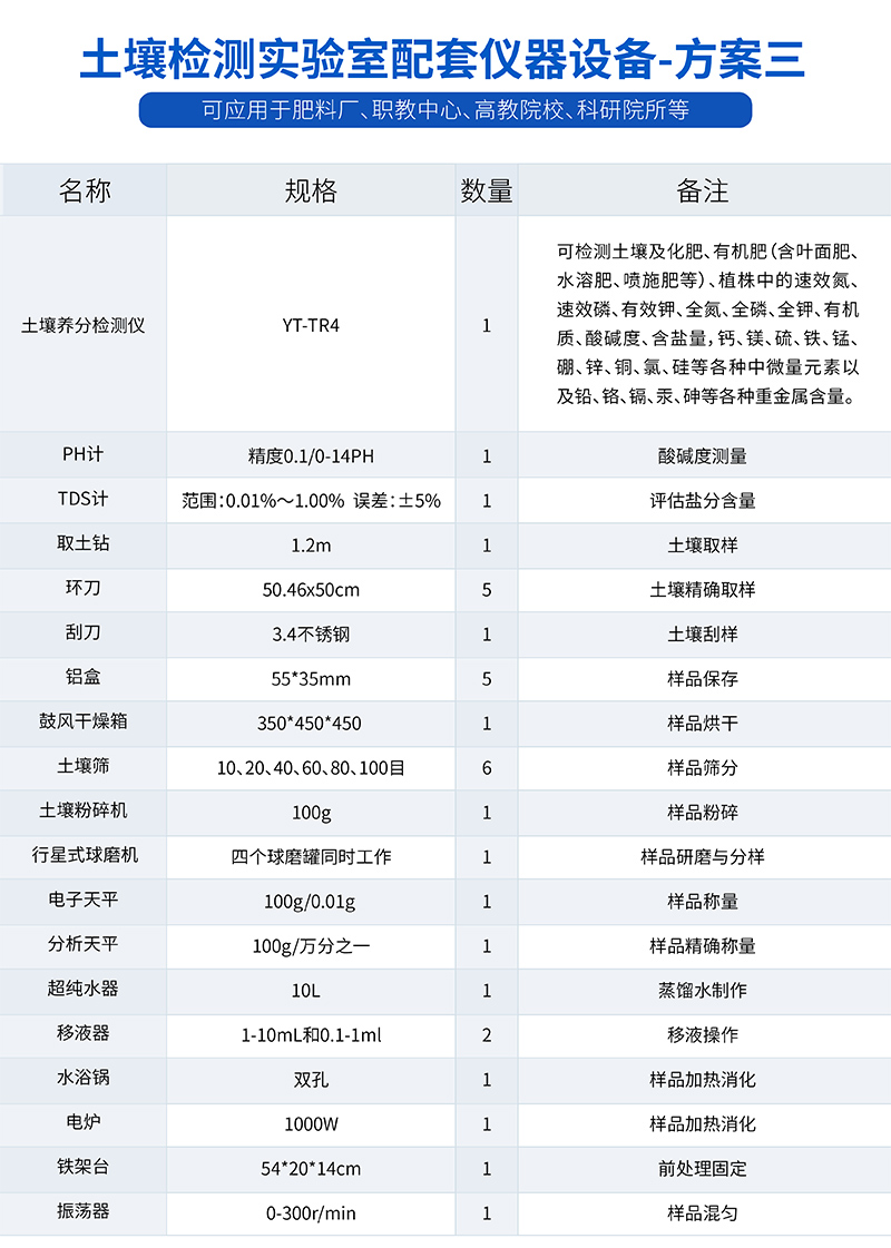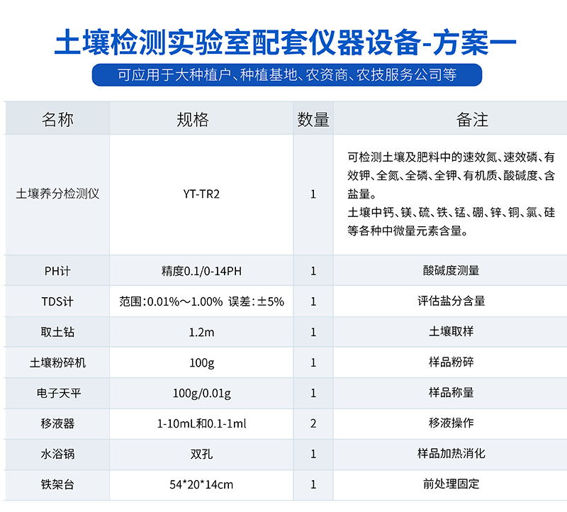 1、土壤養分:●土壤銨態氮、土壤有效磷、土壤速效鉀、土壤硝態氮、土壤水解氮、土壤全氮、土壤全磷、土壤全鉀、土壤有機質(丘林法)、土壤有機質(浸提法)、PH值、含鹽量、水分?!裢寥乐形⒘吭兀和寥棱}、土壤鎂、土壤硫、土壤硅、土壤硼、土壤鐵、土壤銅、土壤錳、土壤鋅、土壤氯;●土壤重金屬:土壤鉛、土壤砷、土壤鎘、土壤鉻、土壤汞。