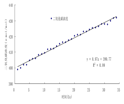 圖a RR-7330 測量系統(tǒng)測量閉路箱內(nèi)CO2累積過程及線性關(guān)系(中國農(nóng)業(yè)大學(xué),韓廣魯,2010)